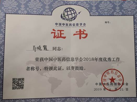 据悉,“中国中医药信息学会优秀工作者”评选活动由中国中医药信息研究会组织,每年评选一次、旨在表彰中医药信息领域从事研发、普及与推广、人才培养或成果转化等方面业绩突出,且在第一线工作的我国中医药信息建设工作者。