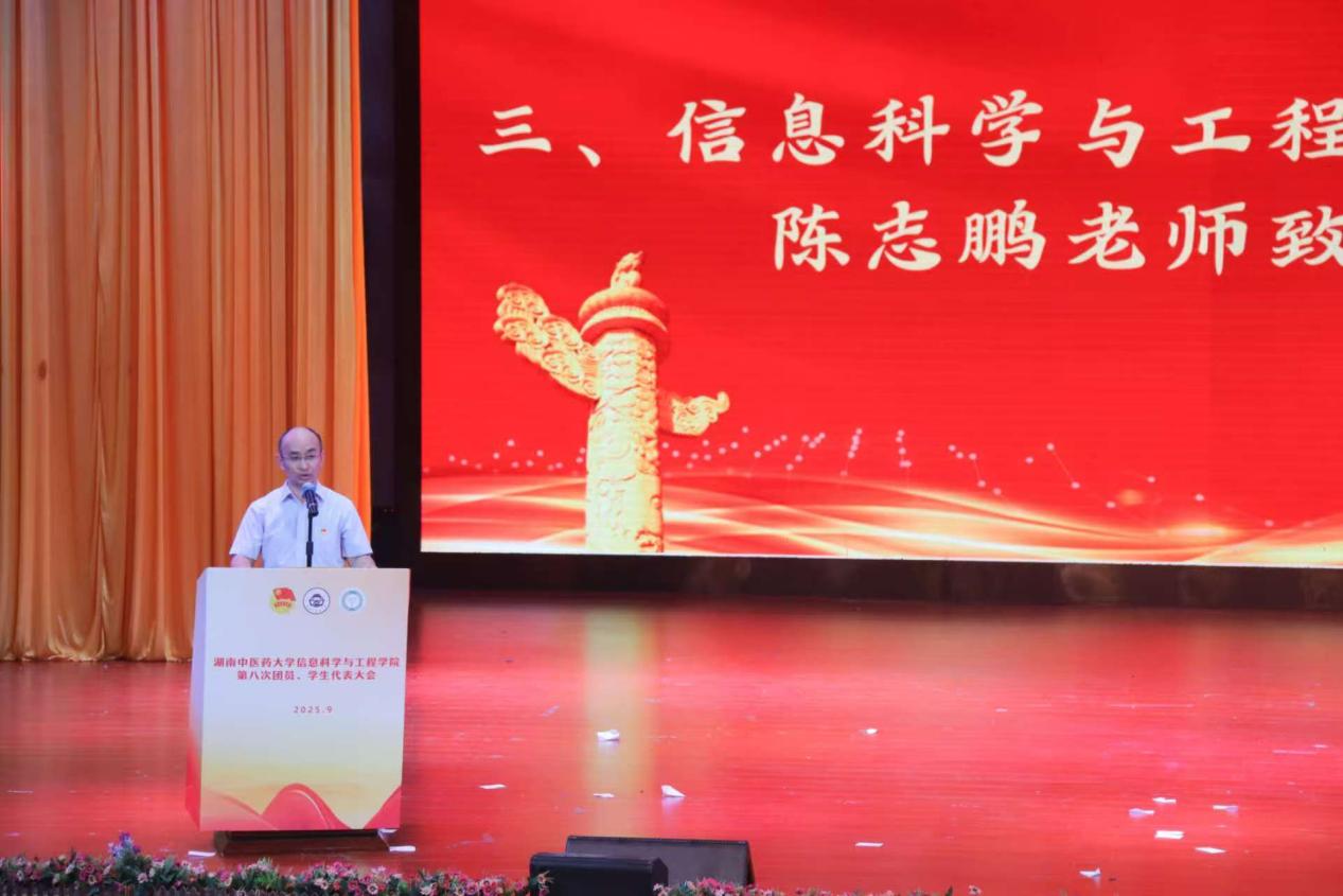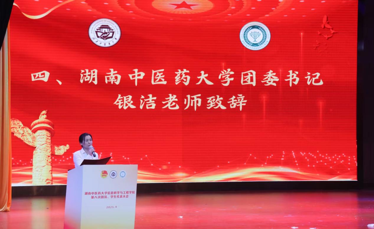 9月28日晚7时,湖南中医药大学信息科学与工程学院第八次团员、学生代表大会在含浦校区学生活动中心顺利召开。湖南中医药大学学生工作部部长朱久宜,校团委书记银洁,信息科学与工程学院党委书记陈志鹏,党委副书记、院长丁长松,党委副书记周辉,副院长刘伟,学生管理科全体老师,校院团副、主席以及我院团员学生代表参加会议。