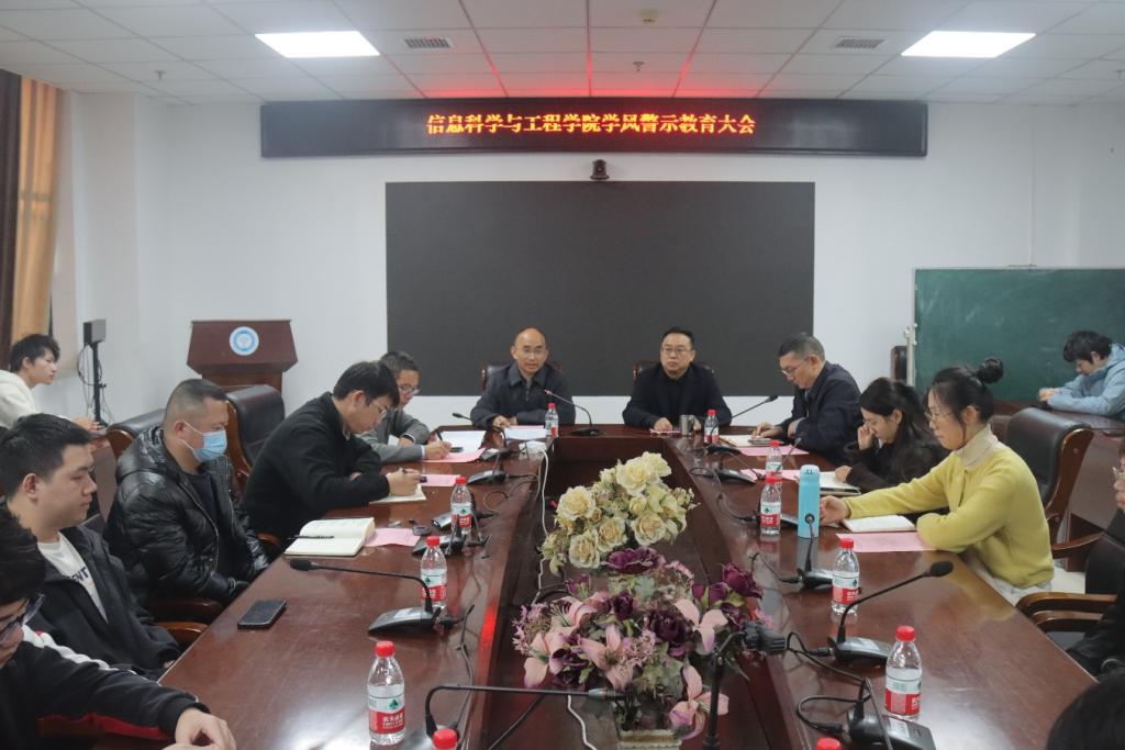 为进一步加强学风班风建设,12月4日,信息科学与工程学院在含浦校区济世楼311会议室召开秋季学期学风警示教育大会,学院党委书记陈志鹏,党委副书记、院长丁长松,党委副书记周辉,学生管理科全体老师及全体受到学籍警示、降级处理的学生参加会议。会议由周辉主持。