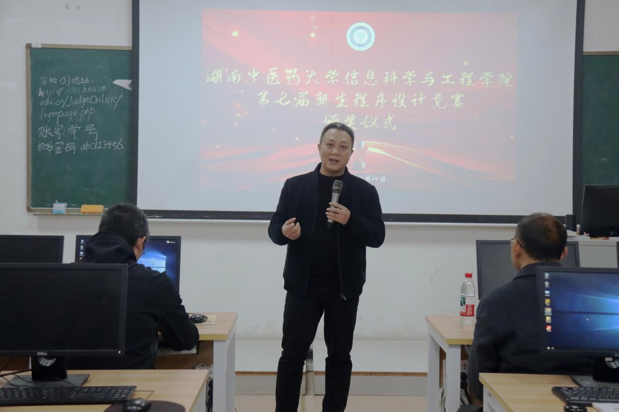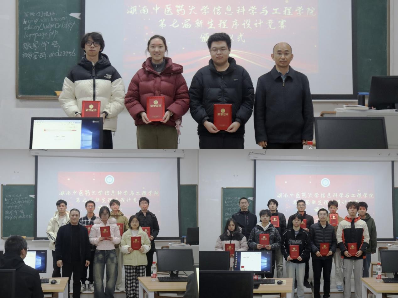 12月14日,信息科学与工程学院第七届新生程序设计竞赛在含浦校区图书馆后栋机房进行,学院党委书记陈志鹏,副院长刘伟,学生管理科科长、2025级学生辅导员胡良铨,2025计算机科学与技术4班班主任、学科竞赛指导教师况玲出席颁奖仪式。